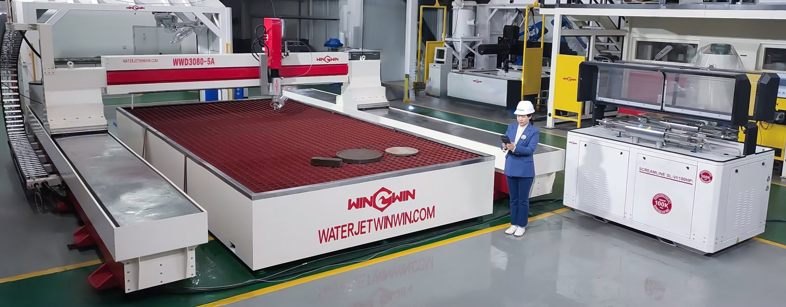 Nos pompes à ultra-haute pression Screamline Pro 100 000 psi, standard et à servocommande, représentent la nouvelle norme de qualité des systèmes de découpe au jet d'eau WIN-WIN.